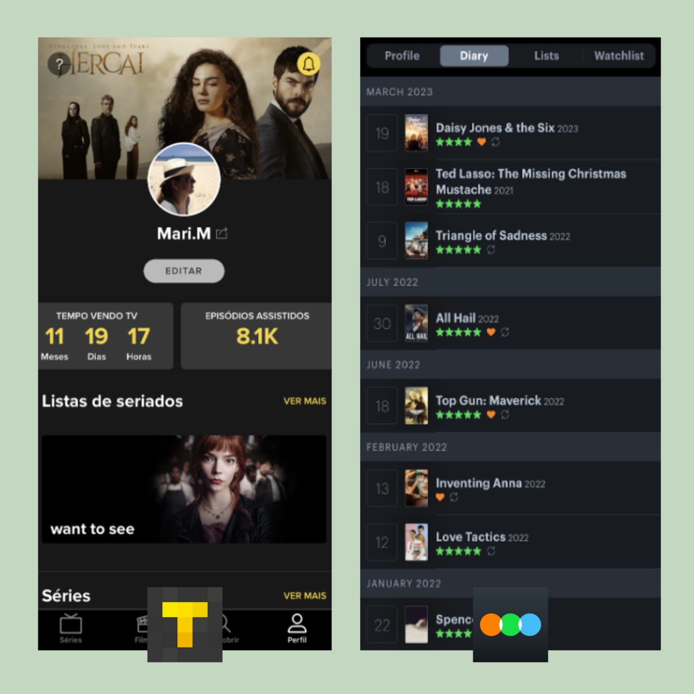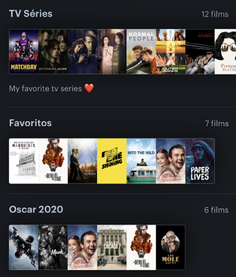 Escolha um aplicativo para salvar a sua lista de filmes e séries favoritas. Alguns mais conhecidos são o TV Time e o Letterboxd. Neles, você pode organizar os títulos como quiser: pelo conteúdo, pelos favoritos, assistidos, não assistidos…